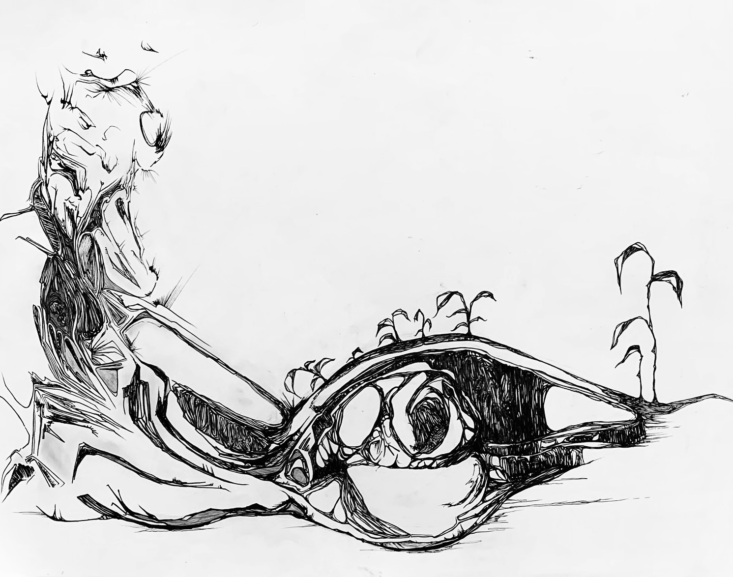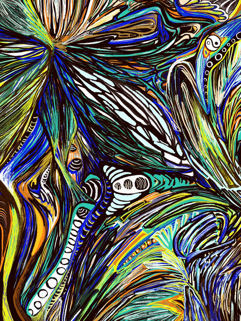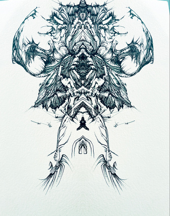 My spiritual line art originated from my involvement in the Creative Legacy Project, where I constructed miniature water color worlds inspired by my exploration of African heritage and Legacy.